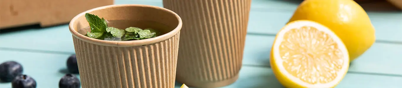 Bicchieri ondulati di alta qualità. Con rivestimento biologico sostenibile per bevande calde e fredde. Acquista all'ingrosso nel negozio online Green Box.