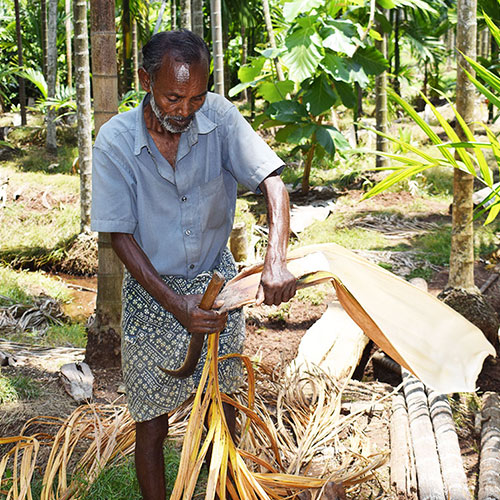 Inoltre, le piantagioni di palme da cui acquistiamo la materia prima per i nostri articoli in foglia di palma sono coltivate senza pesticidi e fungicidi. Anche l'acqua utilizzata per lavare le foglie di palma prima della lavorazione viene raccolta e riutilizzata per l'irrigazione delle piante. In questo modo, gli agricoltori non solo proteggono l'ambiente, ma anche risorse preziose.