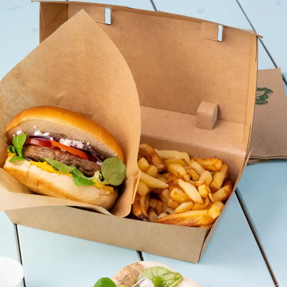 Dalle scatole per burger alle vaschette per snack, fino agli imballaggi per patatine fritte destinati al finger food, i nostri imballaggi per snack bar offrono soluzioni pratiche per street food, mercati e festival. In questo modo puoi confezionare i tuoi piatti in modo sicuro affinché possano essere gustati anche in movimento. Inoltre, Green Box offre anche articoli per l’igiene come tovaglioli e sacchetti per rifiuti biodegradabili.