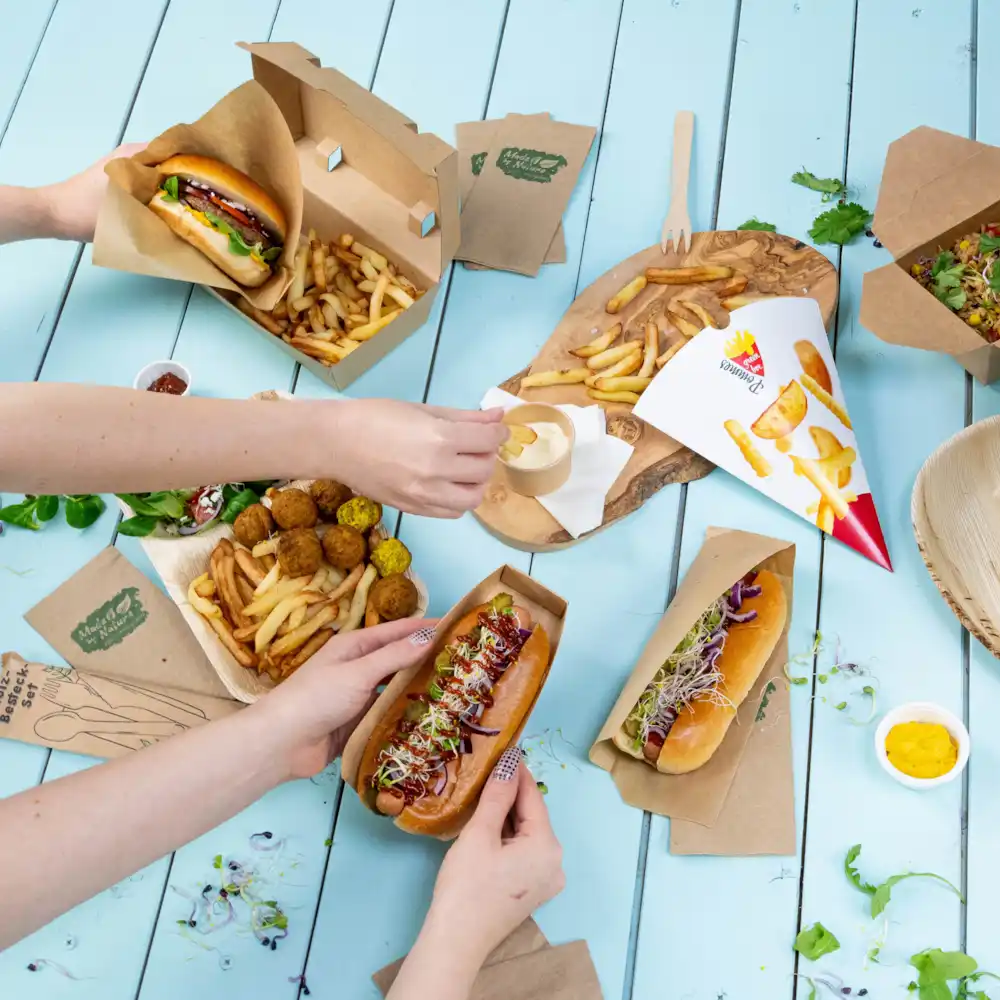 Gli imballaggi per food truck e snack bar devono trasportare il cibo in modo sicuro, mantenerlo caldo a lungo ed essere facili da portare via. I moderni imballaggi da asporto combinano quindi funzionalità, comfort e sostenibilità per la vendita da asporto.