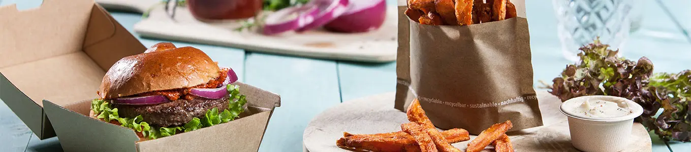 Burger, patatine fritte o snack fritti sono gustosi e molto apprezzati. Per questo spesso sorge la domanda: quali imballaggi sono adatti ai cibi grassi? Gli speciali imballaggi per burger e gli imballaggi per patatine fritte sono generalmente realizzati in carta o cartone speciale che trattiene efficacemente il grasso pur rimanendo stabile.